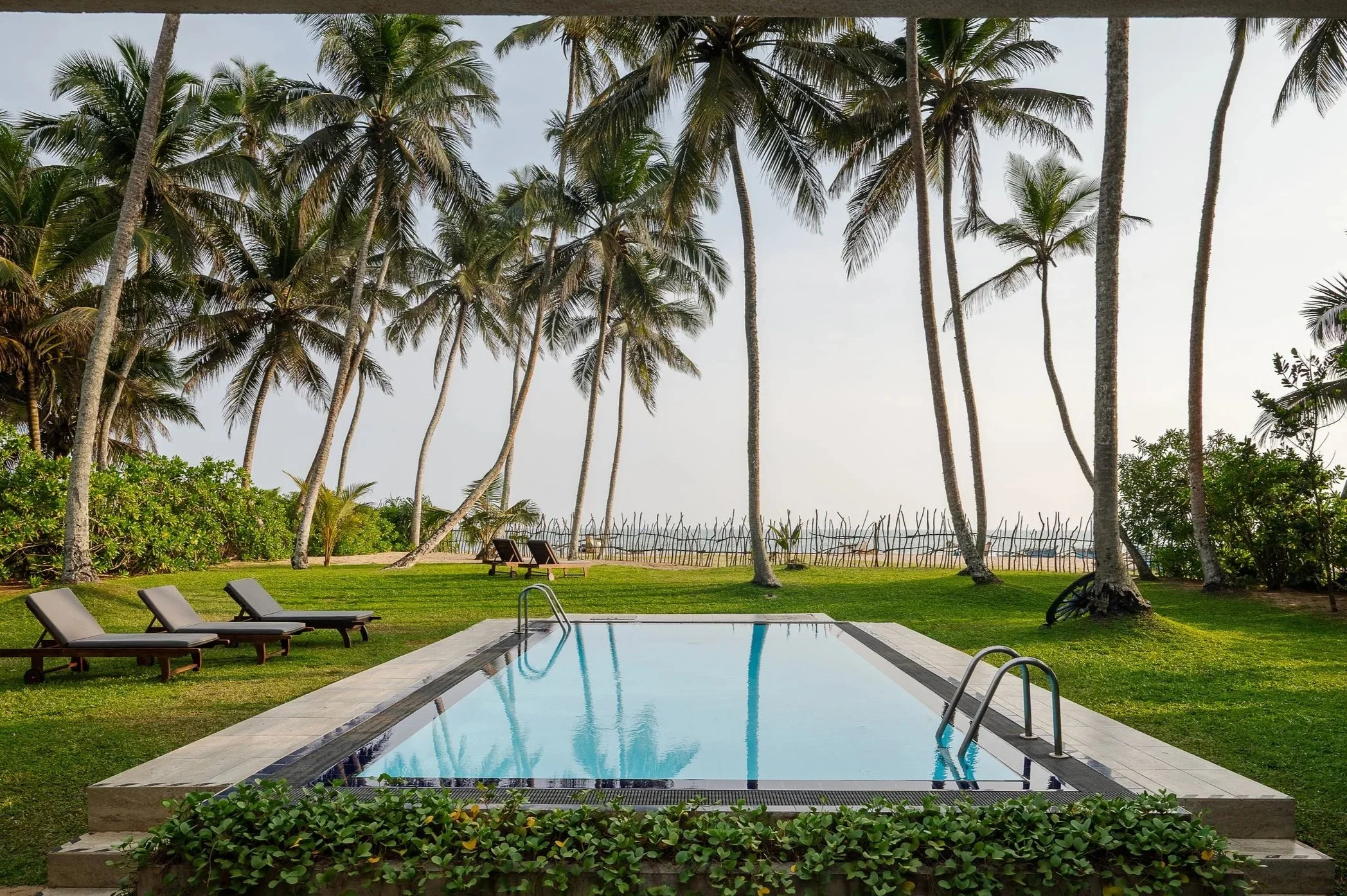 Soak up the island sun on our garden sunbed before cooling off in the swimming pool, shaded by towering palm trees. Ahead, the garden stretches out to a sandy beach, perfect for long strolls and refreshing sea swims. The surrounding area offers a variety of activities, which our team can arrange for you, from bird watching and safaris to surfing and visits to nearby temples.